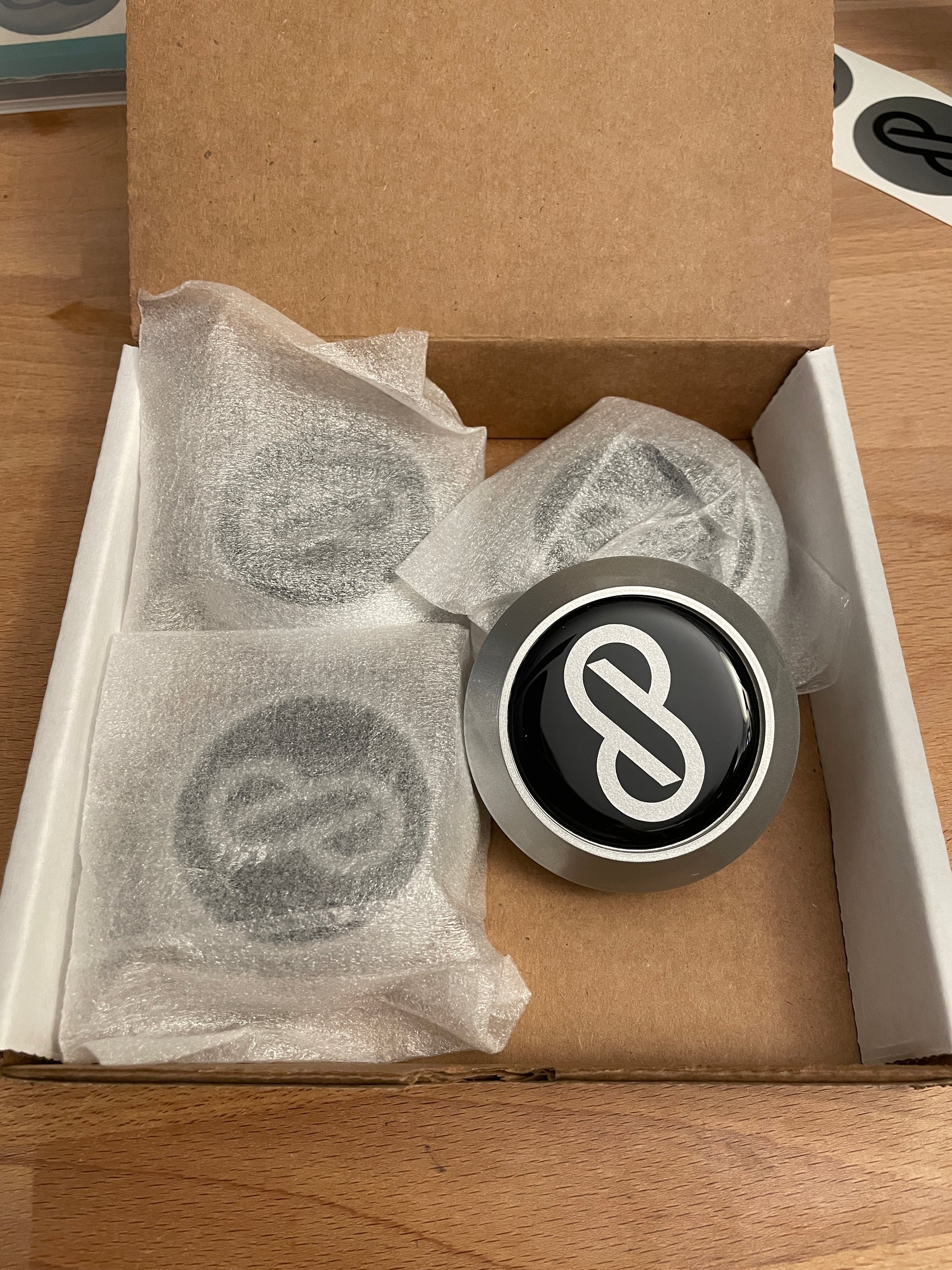 Set of 4 custom center caps designed to fit 16"–18" Enkei RPF1 wheels (also fits 15x8 +28 models)