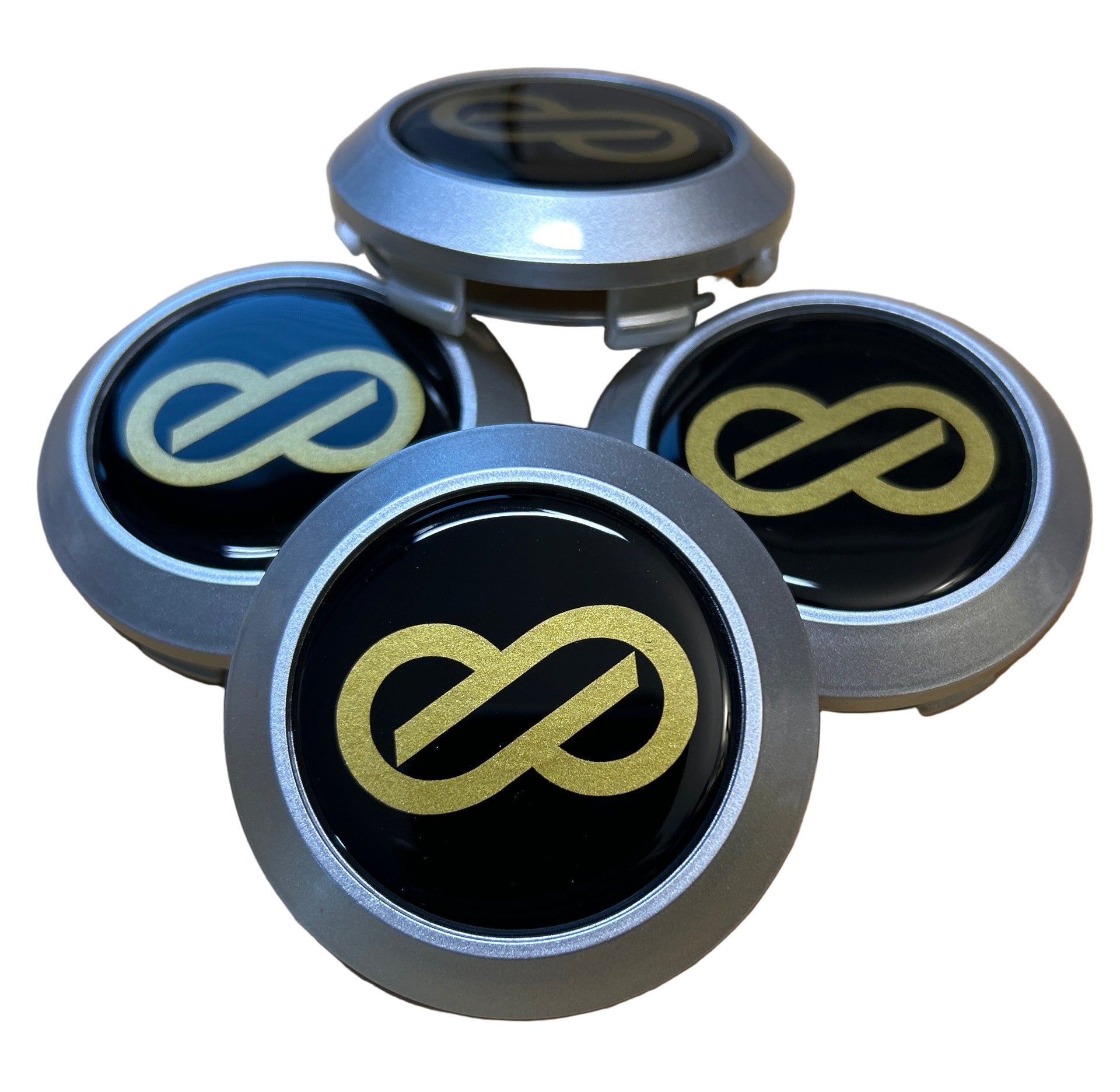 Set of 4 custom center caps designed to fit 16"–18" Enkei RPF1 wheels (also fits 15x8 +28 models).